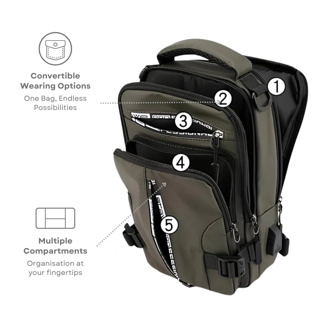 Our Mens Convertible Anti Theft Crossbody Bag blends timeless elegance with modern security. Crafted from premium, easy-care PU leather, it's built to last while maintaining its chic appearance. Carry all your essentials comfortably, without compromising on style or space.